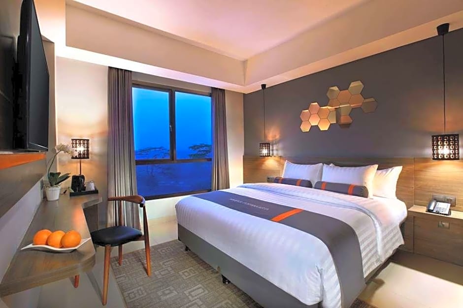 Deluxe Room includes a king-size bed 150-183 width plus hairdryer, safe, and slippers.